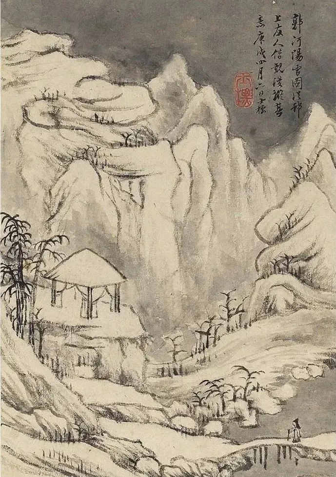 查士标的《查梅壑山水册》绝非传统山水画的简单延续,而是一场精心设计的文人游戏——他以笔墨为棋,在宣纸上与宋元诸家展开跨越时空的对话,将绘画转化为一场充满隐喻的视觉博弈。